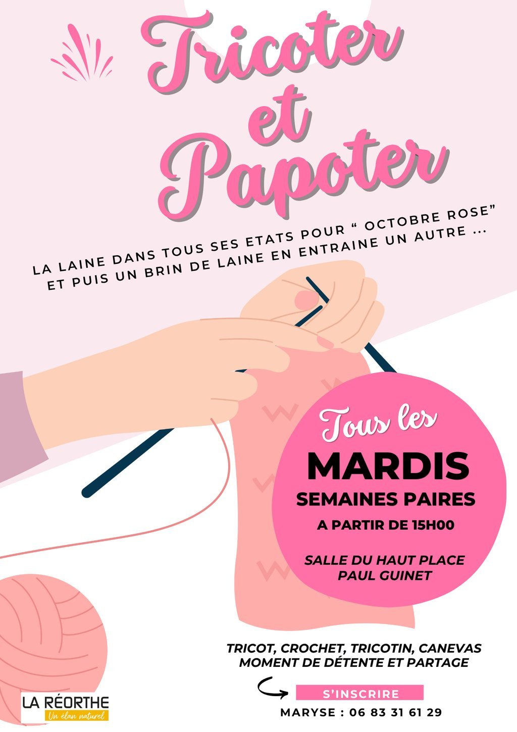 đ Depuis le 10 juin 2025, un atelier "Tricoter et Papoter" a ouvert Ă la RĂ©orthe !