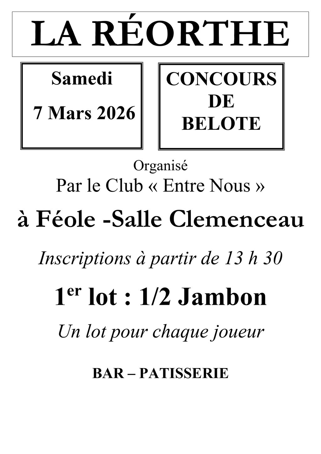 CONCOURS DE BELOTE - 7 MARS 2026 - CLUB ENTRE NOUS
