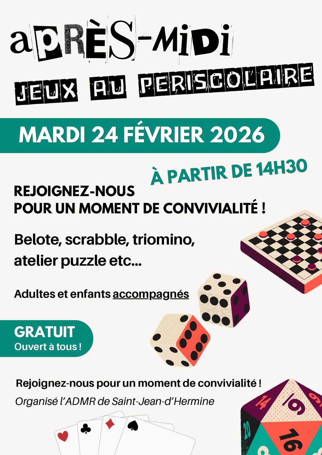 📅 L'ADMR de Saint-Jean d'Hermine organise un après-midi jeux !