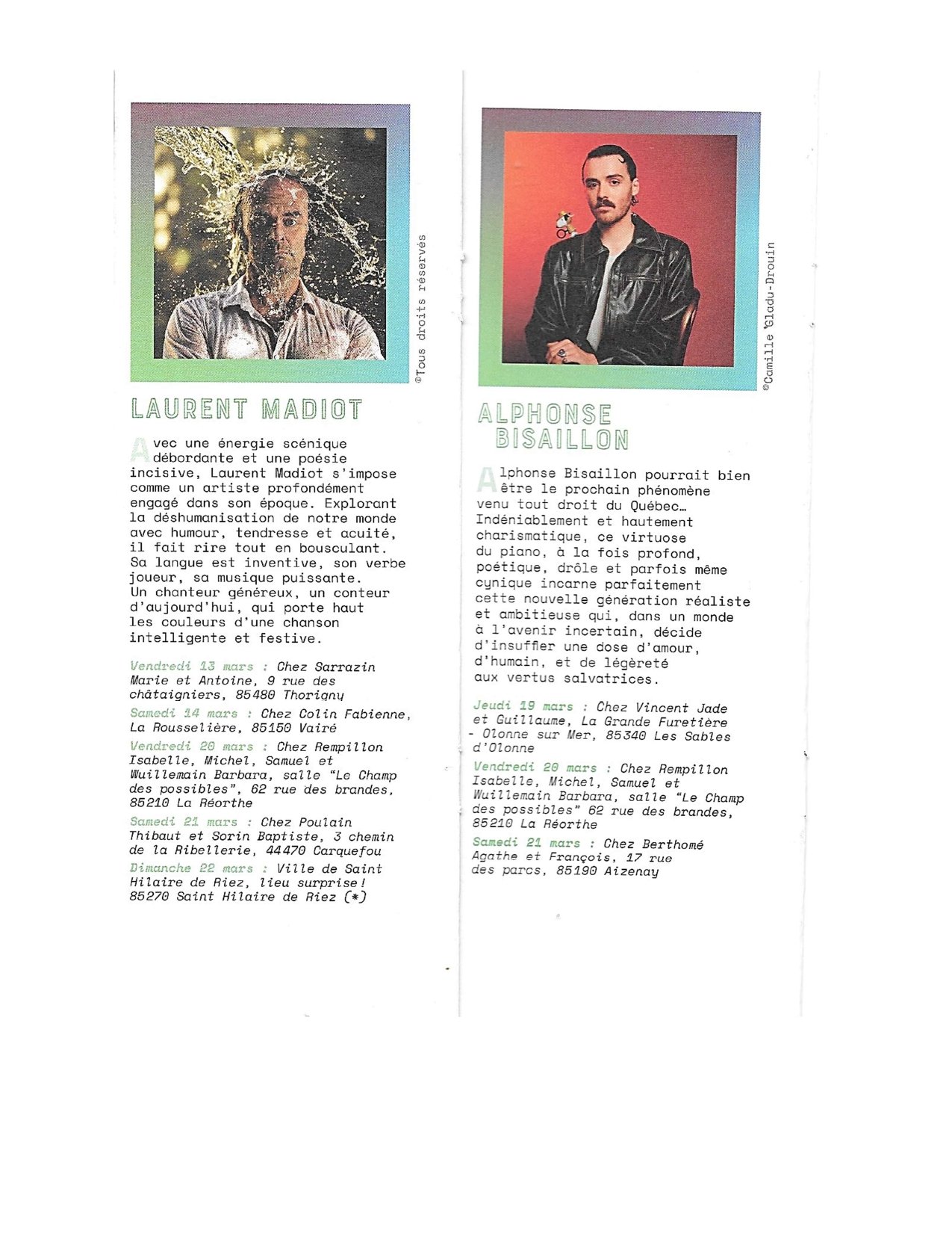 Deux auteurs compositeurs interprètes avec des univers différents, mais à découvrir absolument !